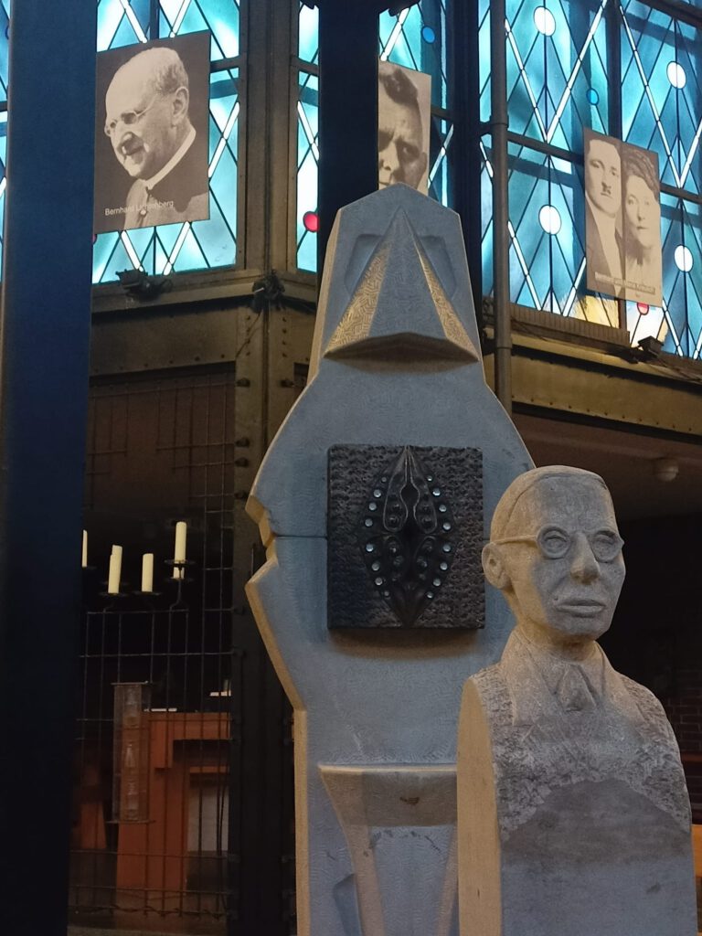 Die Skulptur hatte zunächst ihren Platz unmittelbar vor dem Tabernakel. Wer sich mit Nikolaus Groß beschäftigt hatte, und in der Gemeinde waren das sehr viele, wusste, dass der Mittelpunkt seines Lebens Jesus Christus war im Sakrament der Eucharistie. Insofern war es ein starker symbolischer Ort für den Einzug des Seligen in die Barbarakirche und die Erinnerung an ihn.